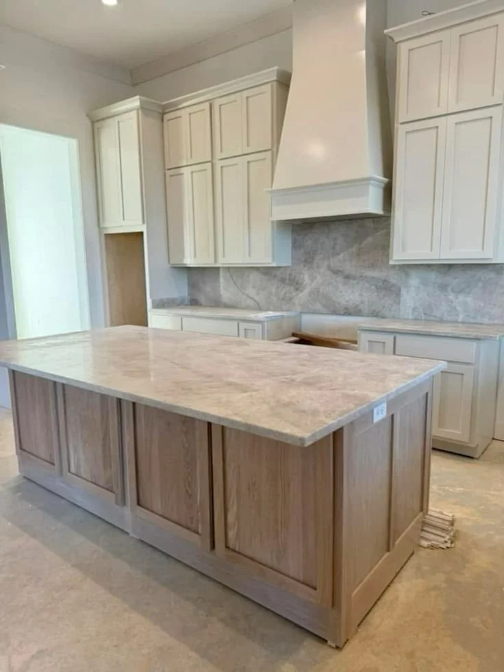 With White or Light Gray Cabinetry: Taj Mahal countertops become the focal point. Light cabinetry recedes; the stone shines. Perfect for contemporary and transitional kitchens.
